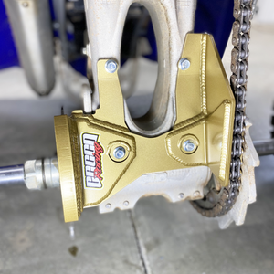 Uses 8mm hardware - you will need to drill & tap your swingarm to 8mm-1.25 thread
