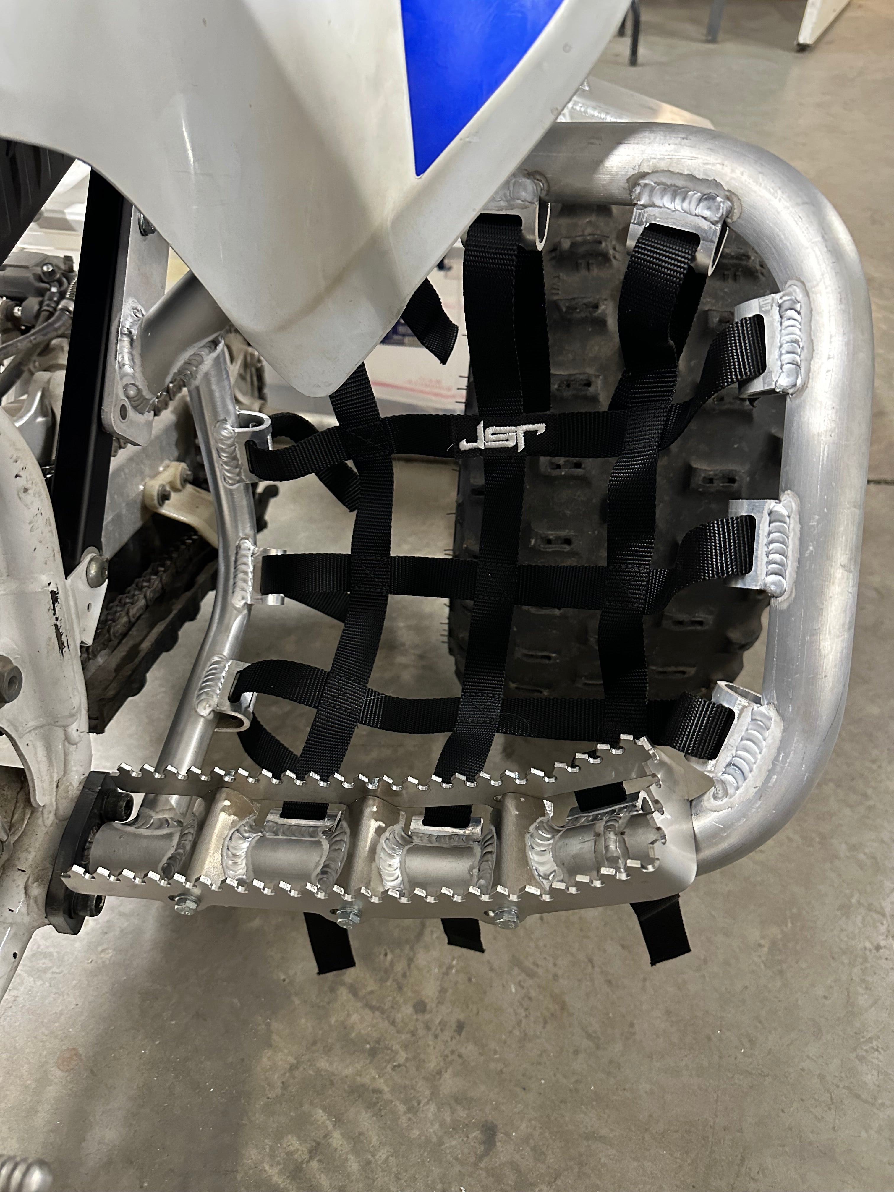 STAINLESS STEEL FOOT PEG & TEETH DESIGN IS 12" LONG X 2.5" WIDE FOR BETTER GRIP AND MAXIMUM CLEAN OUT OF DEBRIS WHILE RIDING.