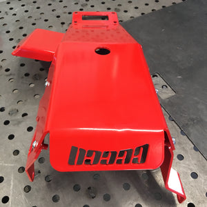 Provides much-needed protection for the engine oil pan, clutch slave cylinder and transmission reverse switch from obstacles on the trail.