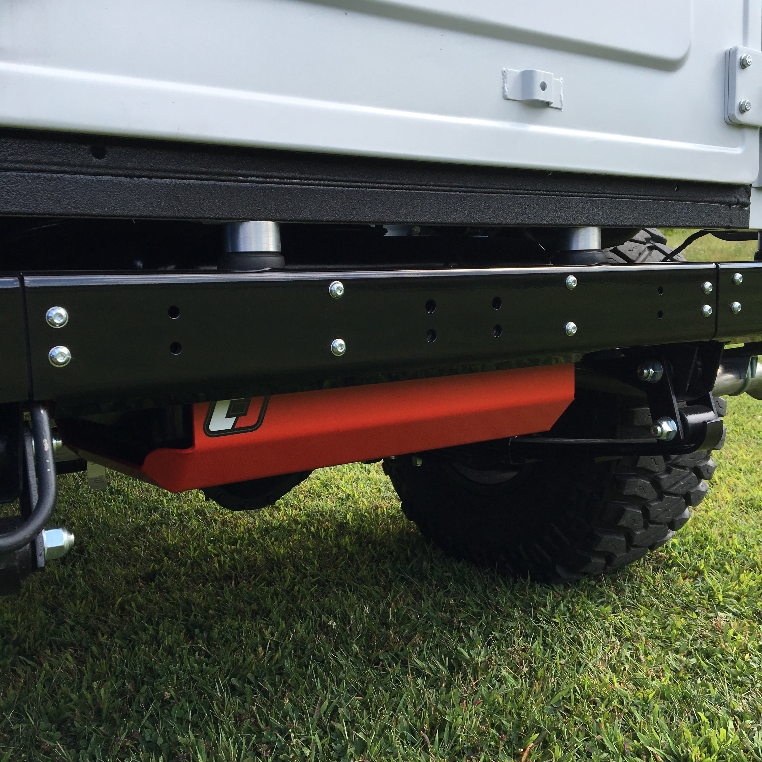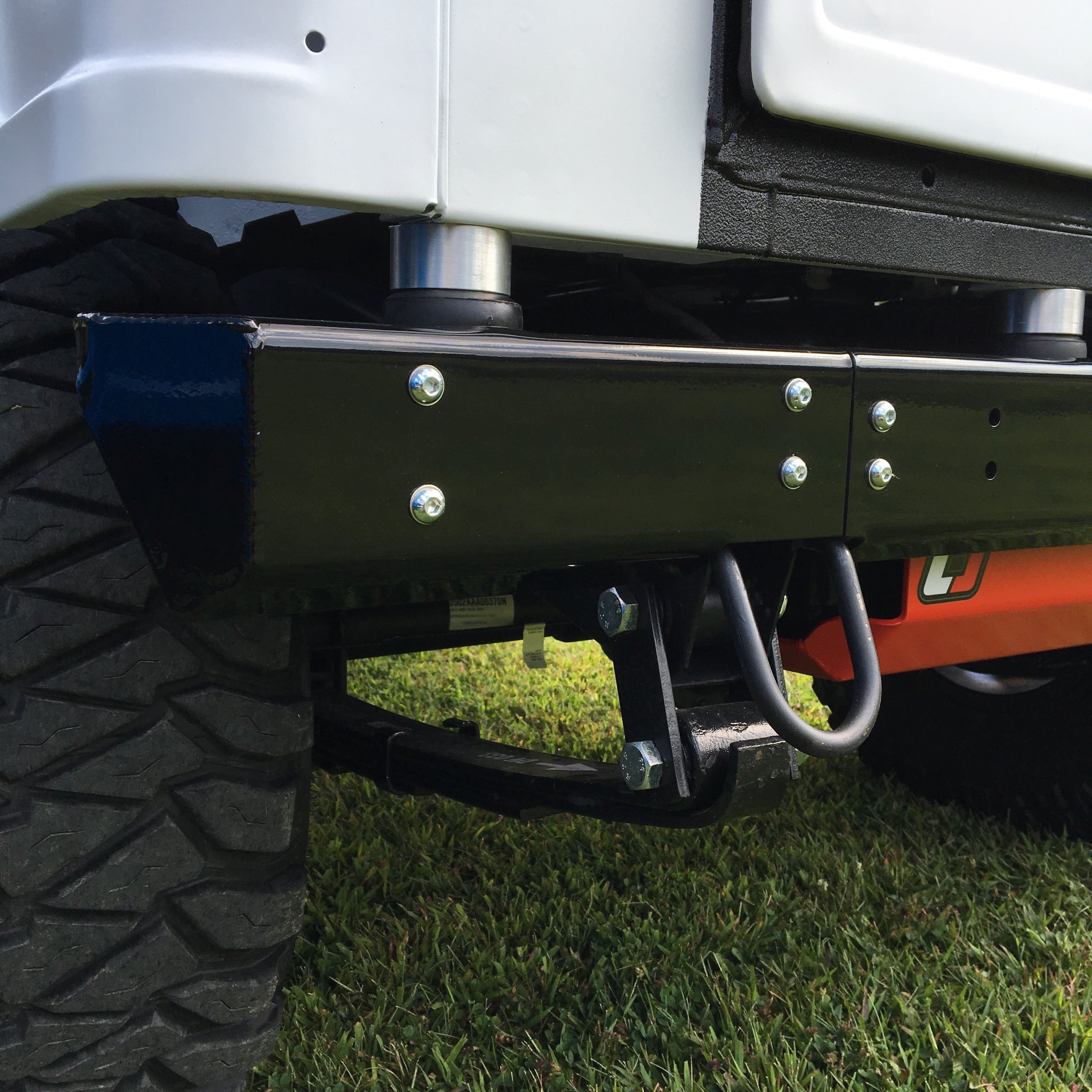 Roxor rear modular bumper made to protect the exposed rear cross member while also working with the following 2" receiver kits: Strongmade RH120 RXR performance.