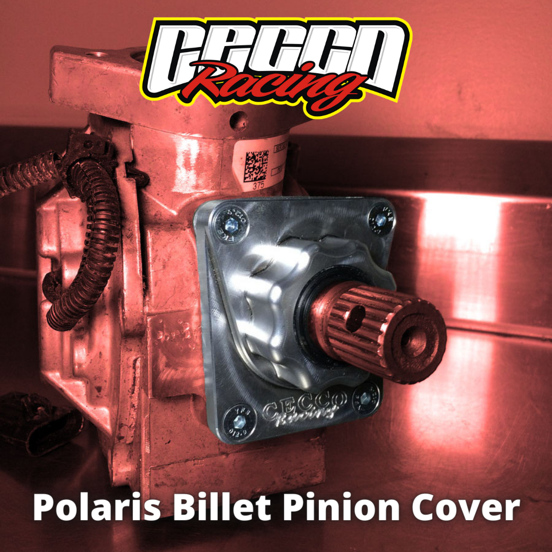 Cecco Racing Billet Pinion Cover will save you thousands of dollars on replacing your front differential from premature failure of the factory cast aluminum (2013-17) and steel (2018 & newer) Polaris Pinion Covers. Our Billet Pinion Cover design is not only stronger that the factory original cover but also includes many key features that makes it simply the best pinion cover on the market.