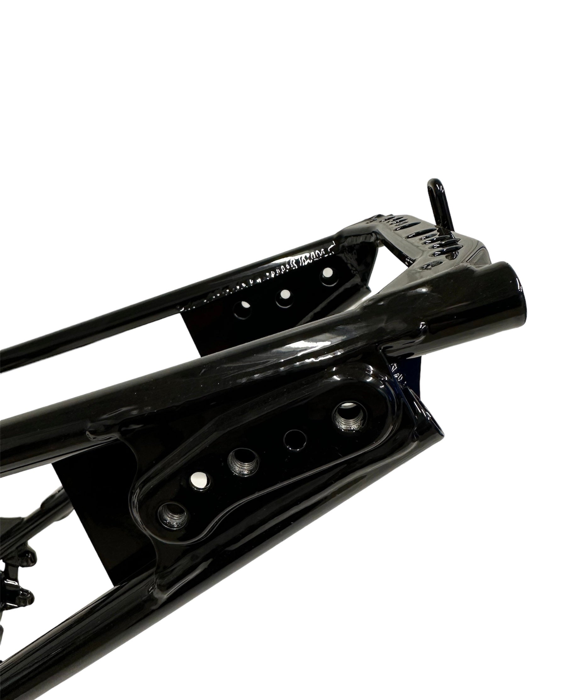 This 29 piece weld on kit was designed to strengthen the OEM frame with gussets and still allow frame flex.